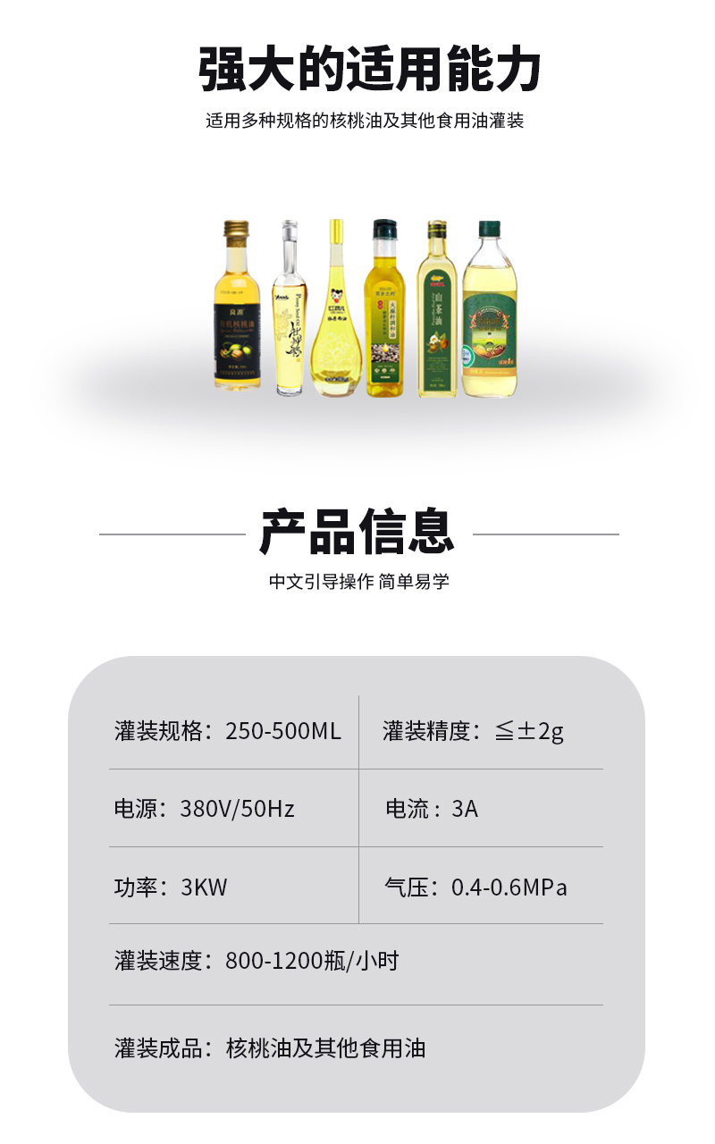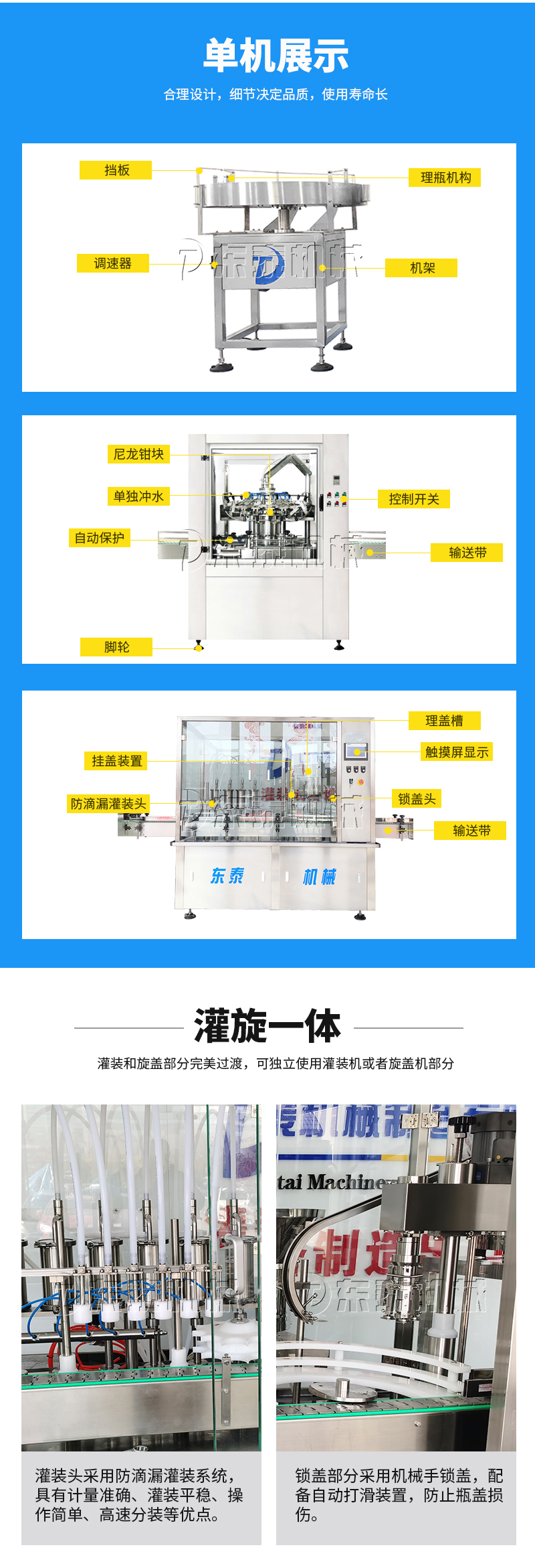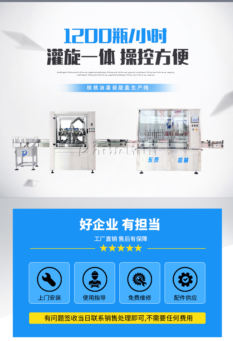 本灌裝流水線設(shè)備具有穩(wěn)定可靠、自動(dòng)化水平高,相比同類產(chǎn)品有著更長的使用年限,維護(hù)簡單,整線中各設(shè)備的協(xié)調(diào)性、連貫性強(qiáng),整線設(shè)計(jì)合理等特點(diǎn)。灌裝設(shè)備采用獨(dú)家專利系統(tǒng)結(jié)構(gòu),為當(dāng)今行業(yè)內(nèi)水平,整線滿足量產(chǎn)化、集成化生產(chǎn)的需要。