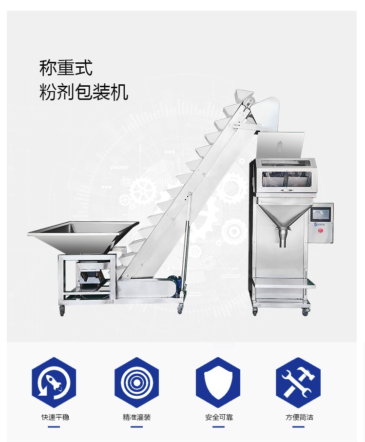 ZX-C型稱重式定量包裝機是一種機械給料與電子稱重組合的定量裝袋機械,廣泛適用于食鹽、化工原料、飼料、醫(yī)藥、糧食、食品添加劑等流動性較好的顆;蚍蹱钗锪系亩堪b,其優(yōu)點是:操作簡單、性能可靠、計量準確、價格便宜、耐腐蝕性強,是一種理想的定量包裝機械。